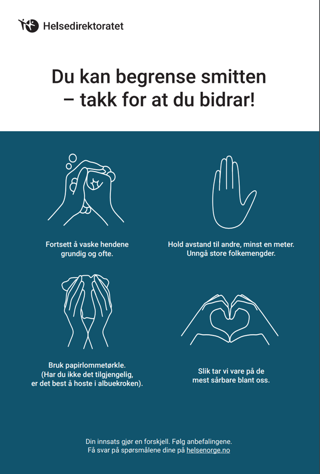 Ellers viser vi til regjeringens og FHIs anbefalinger og regler i lenker her: